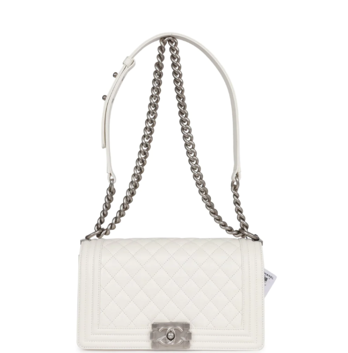 CC 25cm Boy Handbag Calfskin Silver Tone Metal Black